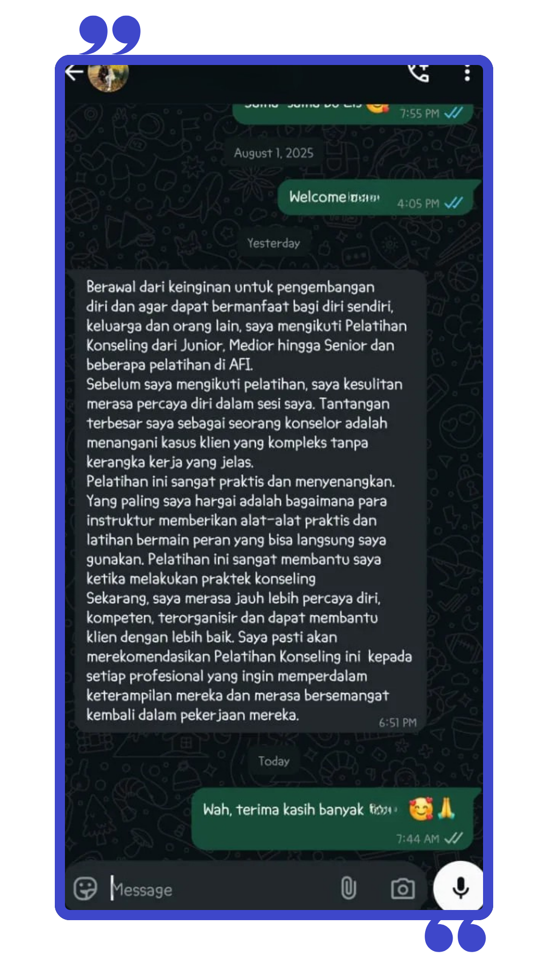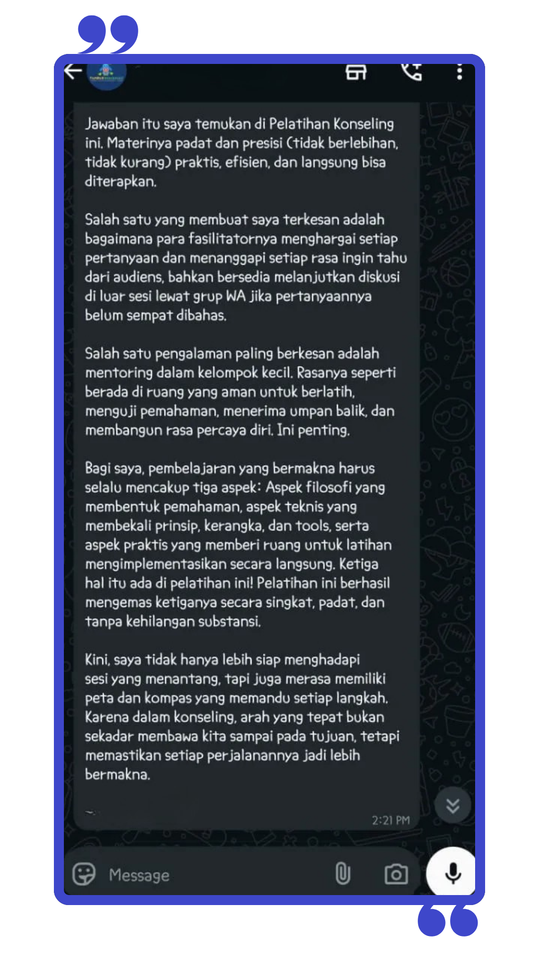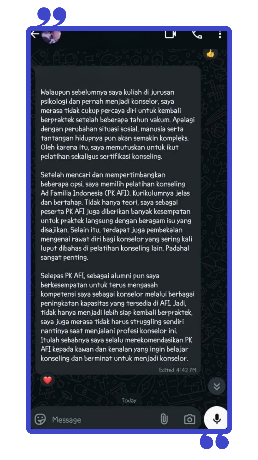 pengalaman puluhan tahun di bidang konseling.